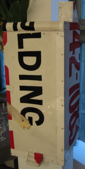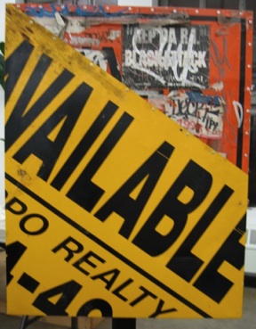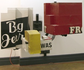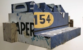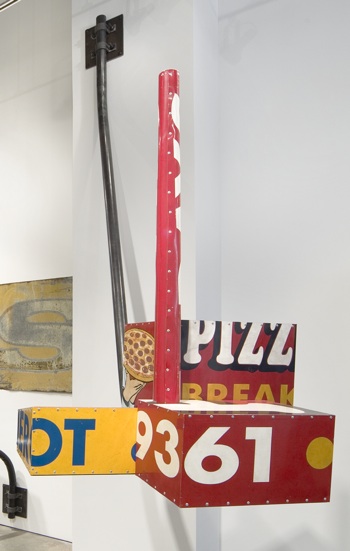 Big Vinny (Pizza Factory Series), 2007 The Yellow Dynamo (Pizza Factory Series), 2007 found aluminum sign, rivets 24.5 x 24 x 20 in mount dimensions variable: handbent plumbing pipe, forged brackets, welded plate, hardware |
