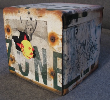 Cabinet Tenement, 2007 found filing cabinet, painted tin ceiling, rivets, hardware |