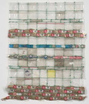 Van Dyke Stripes, 2006 found drug bags, green thread |